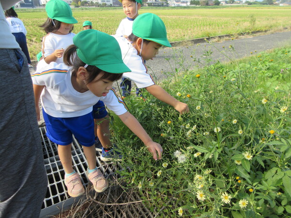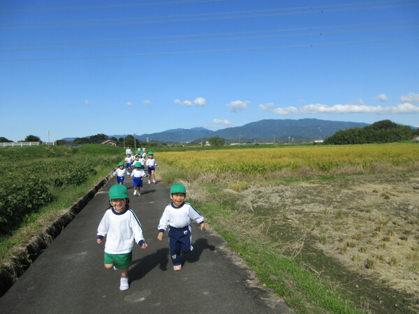 田んぼの周りをぐるり。走ったり花を見つけたりと思い思いに楽しむ子どもたち