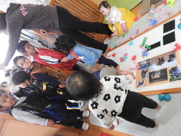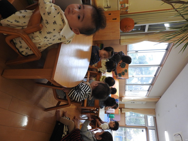 いつもの活動にハロウィンの活動を取り入れて遊んでいますよ。