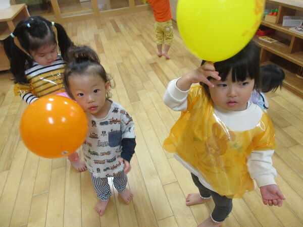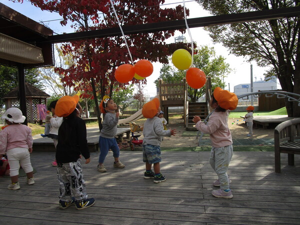 HAPPY HALLOWEEN!!風船で作ったおばけやカラーポリ袋で作った衣装を着てハロウィンの活動を楽しみました。