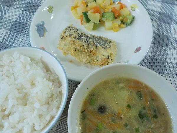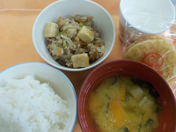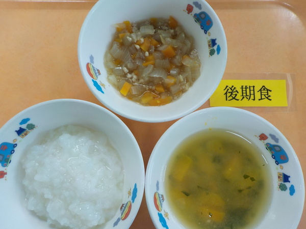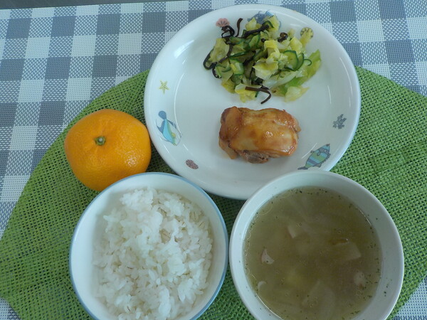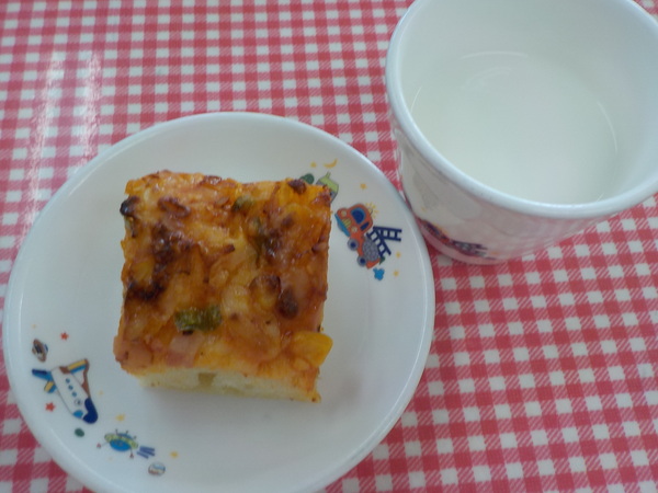 もも組、うめ組で2人組になって給食も一緒にたべて会話しながら