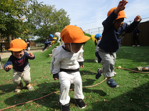 食べたら元気いっぱい!風船めがけてタッチしたり、長縄を使ってのダイナミックジャンプ!