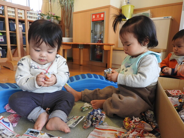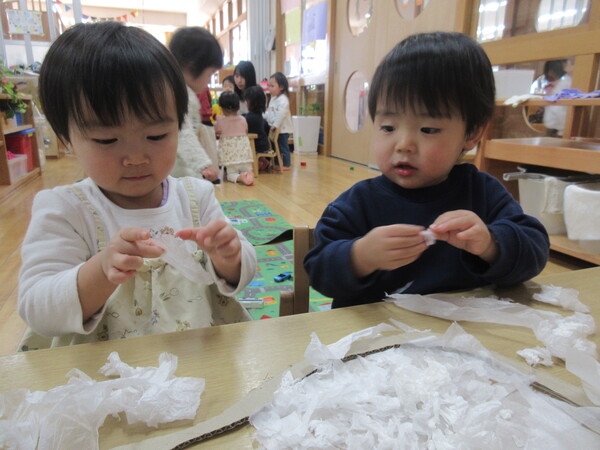 指先を使って破ることに少し苦戦しているようでしたが、コツをつかむとどんどん破ります♪