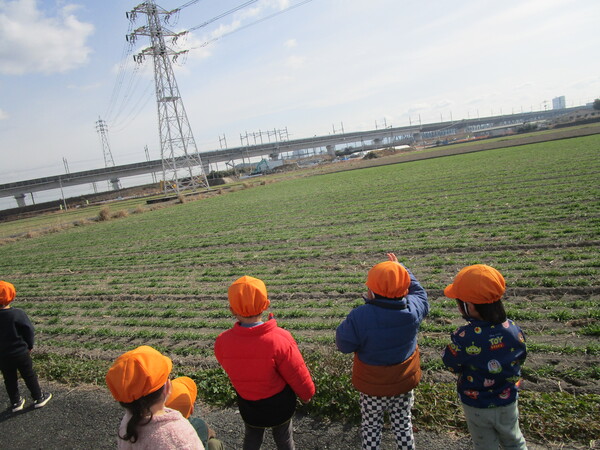 帰り際に新幹線が通り「おーい!」とニコニコ笑顔で手を振りました。