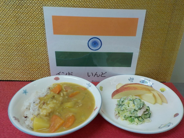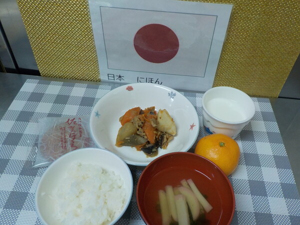 活動が終わった後給食が気になる子どもたち…‼「今日はどこの国のどんな料理かな?」と話して給食の時間が来るのを待っています。
