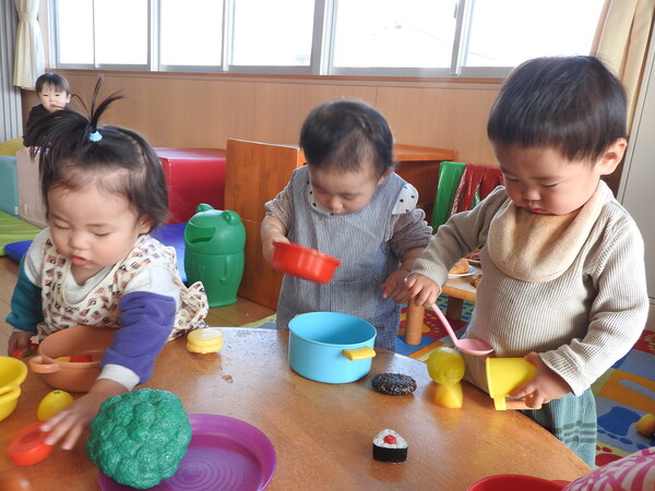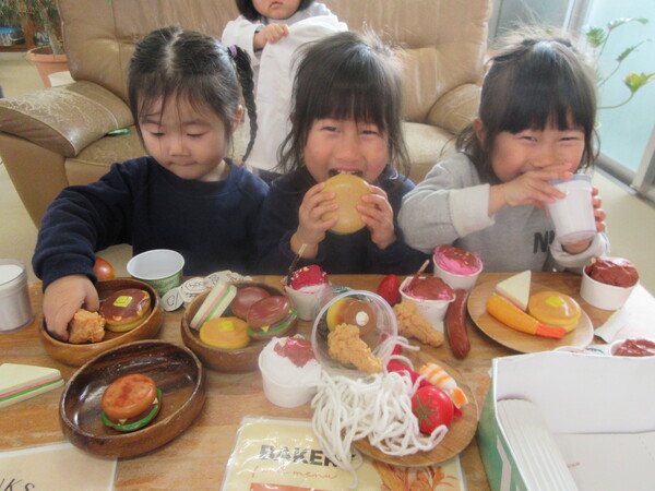 今日は、ごっこ遊びのスペースを広く取って遊びました!