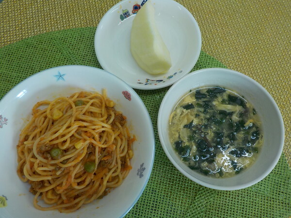 もも組、うめ組で2人組になって給食も一緒にたべて会話しながら