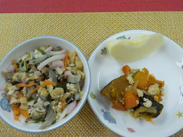 そのほかにも、ごっこのコーナーではエプロンを着て野菜や果物を皿に並べてみんなで料理ごっこを楽しんだり、
