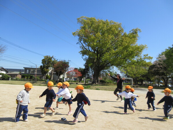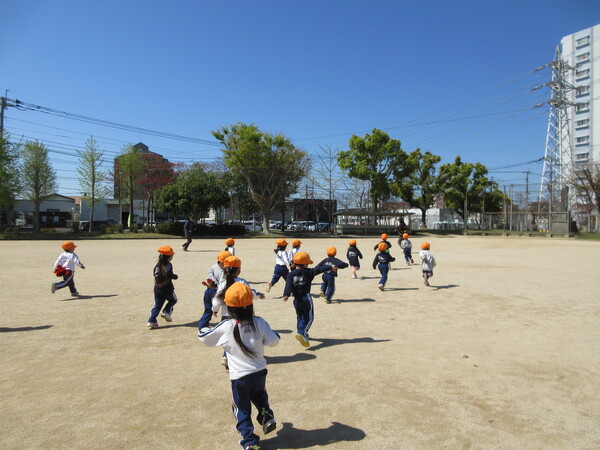 すみれ組が始まって約1週間が経ちました。最初のころは、泣いてなかなか遊べなかった子どもたちでしたが、少しずつ慣れてきていろいろな遊具に触れて遊ぶ姿が見られるようになりました。