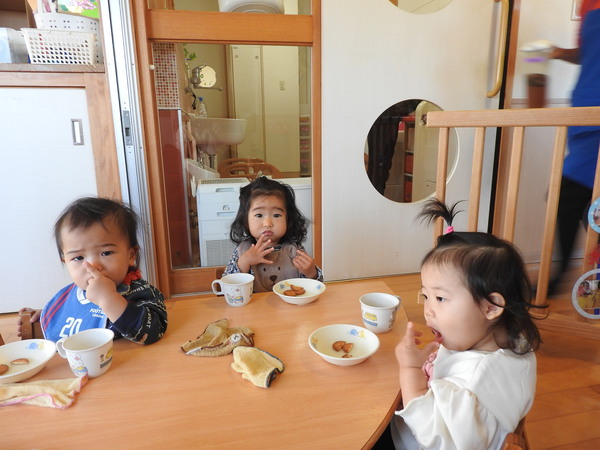 今日の10時のおやつはオレンジ!・・・〜と♬さつまいもチップス♬
