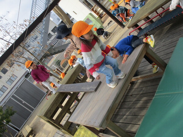 暖かい日差しにぬくもりを感じながら戸外で元気に遊んでいます!