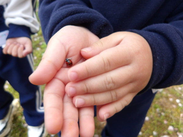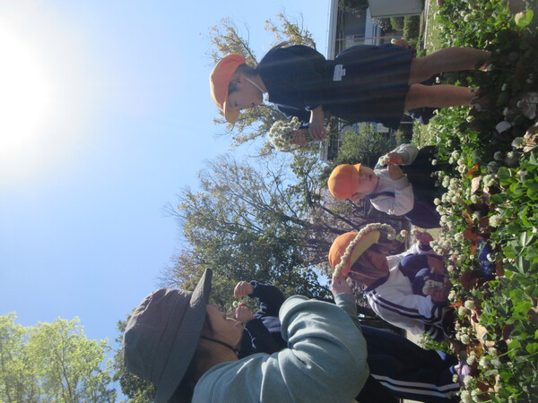 たんぽぽやシロツメクサなどを集めて花束を作ったり、てんとう虫や蝶々を捕まえて観察したりと