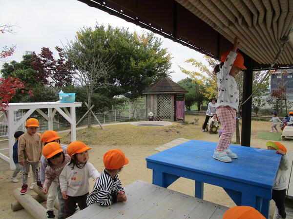 今日は気候が良く一日外での活動。どんぐりころころ〜♪とコロコロコースターを