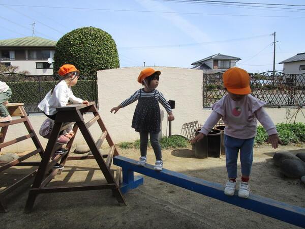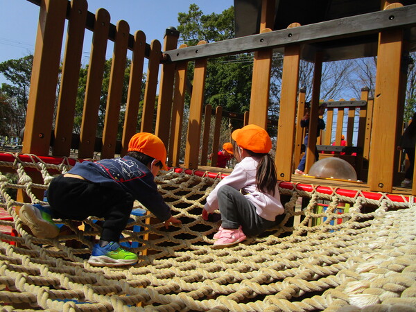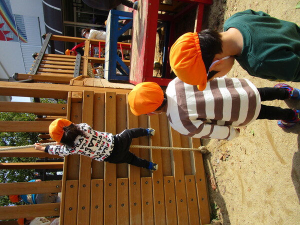 そこで、3クラス合同でゲーム大会!!じゃんけん列車や猛獣狩りなど楽しんでから自由遊び、それからお弁当♪「おいしーい!」と満面の笑顔でしたよ!