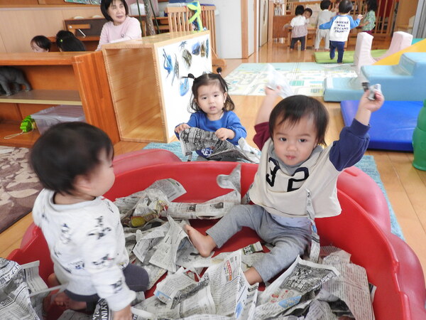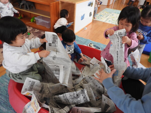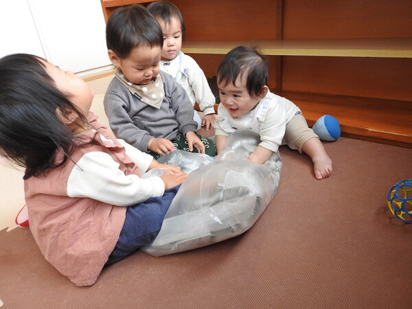 投げたり被ったり足で踏んで感触を楽しんだりと全身で遊びましたよ。