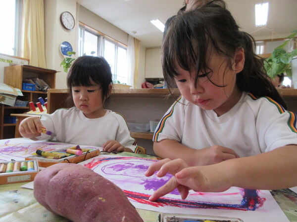 さつま芋を触ったり、よく観察したりしながら自由にスケッチをしたり、
